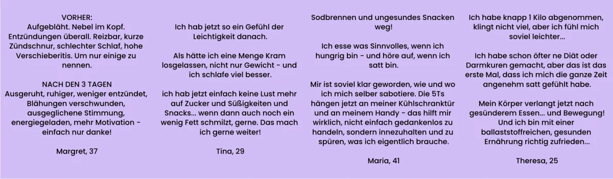 Bitte beachte, dass dies persönliche Erfahrungen von früheren Teilnehmerinnen sind, die sich wirklich auf die Challenge eingelassen haben.